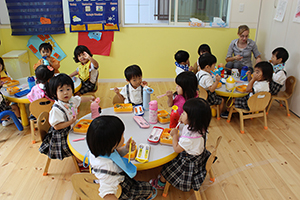 保育園での生活を通じて外国人と触れ合いながら
